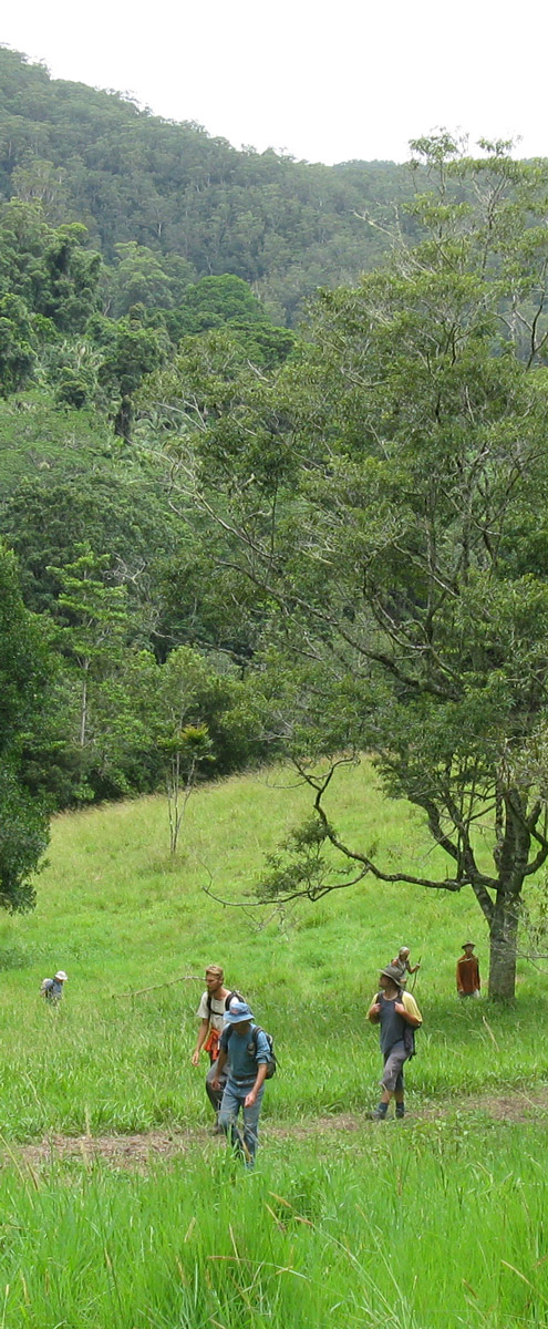 A line of men silently wind through ancient forests