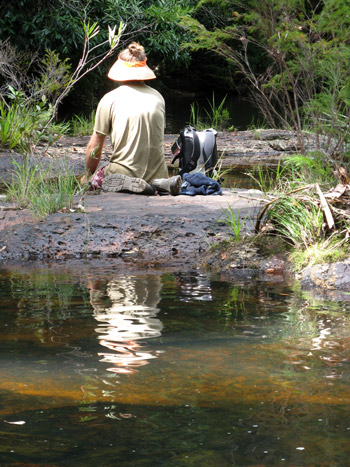 Sitting in silent meditation as the morning sun warms our bodies